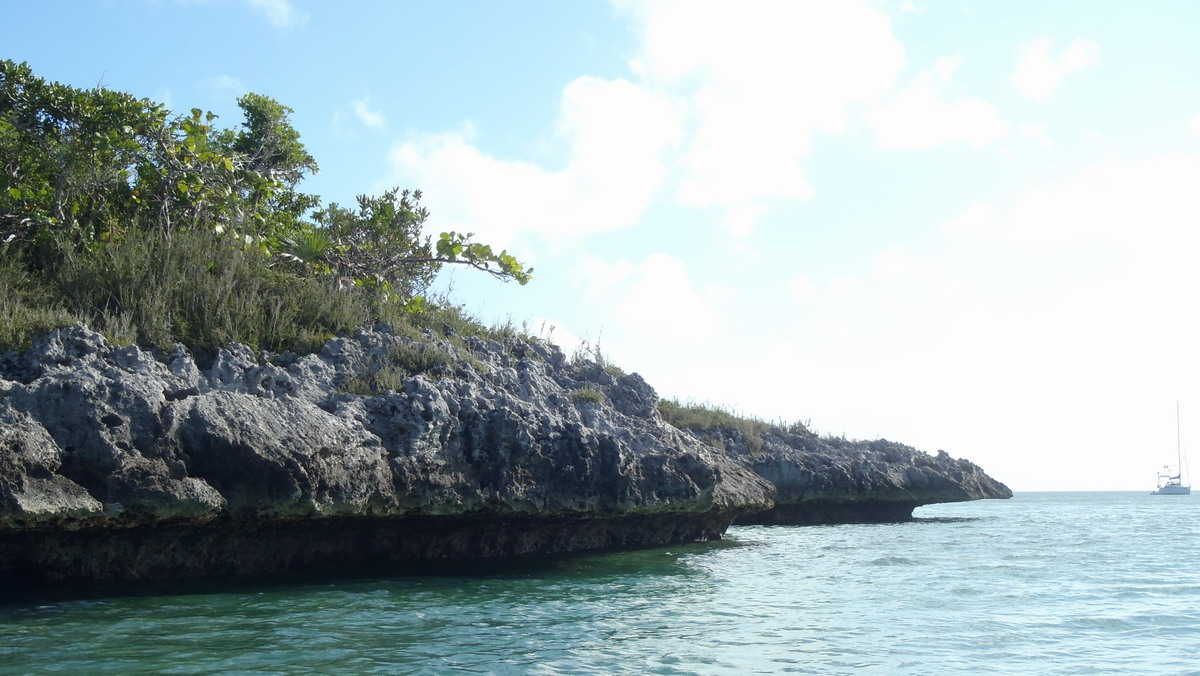 | 17 décembre reprise des activités avec une promenade sur terre près du mouillage. Nous y ferons encore de la baignade, de la pêche aux conchs, ma première noix de coco et une coupe de cheveux sur la plage commencée par Louise et complétée par Johanne. |