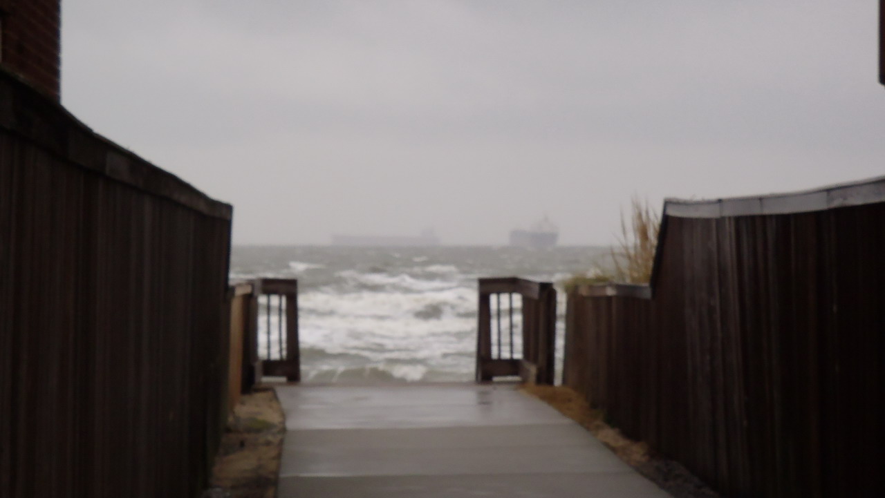 le 6 sur le pont tunnel long de 20 miles qui traverse l'embouchure de la Chesapeake, remarquez au loin le bateau qui va passer au dessus ... |