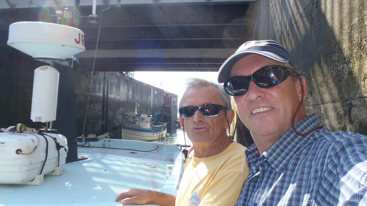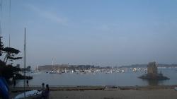 | 2014-09-04 - AM _/)_ ~ Ce matin la vue de notre fenêtre de chambre nous annonce une belle journée. Jean me demande si je veux convoyer un bateau de pêche de 31 pieds (9.45M) à partir d'un mouillage en amont du barrage marée motrice sur la Rance en direction de la marina de St-Malo et la réponse est effectivement oui. Nos amoureuses quand à elle sont allez marcher en ville et sont venues nous chercher à la marina. On en a profité pour faire le tour de la cité d'Aleth avec ses blocaus qui évoque bien la férocité des attaques menées par les Américains pour déloger les Allemands de la ville de St-Malo en 1944... ~ _(\_ |