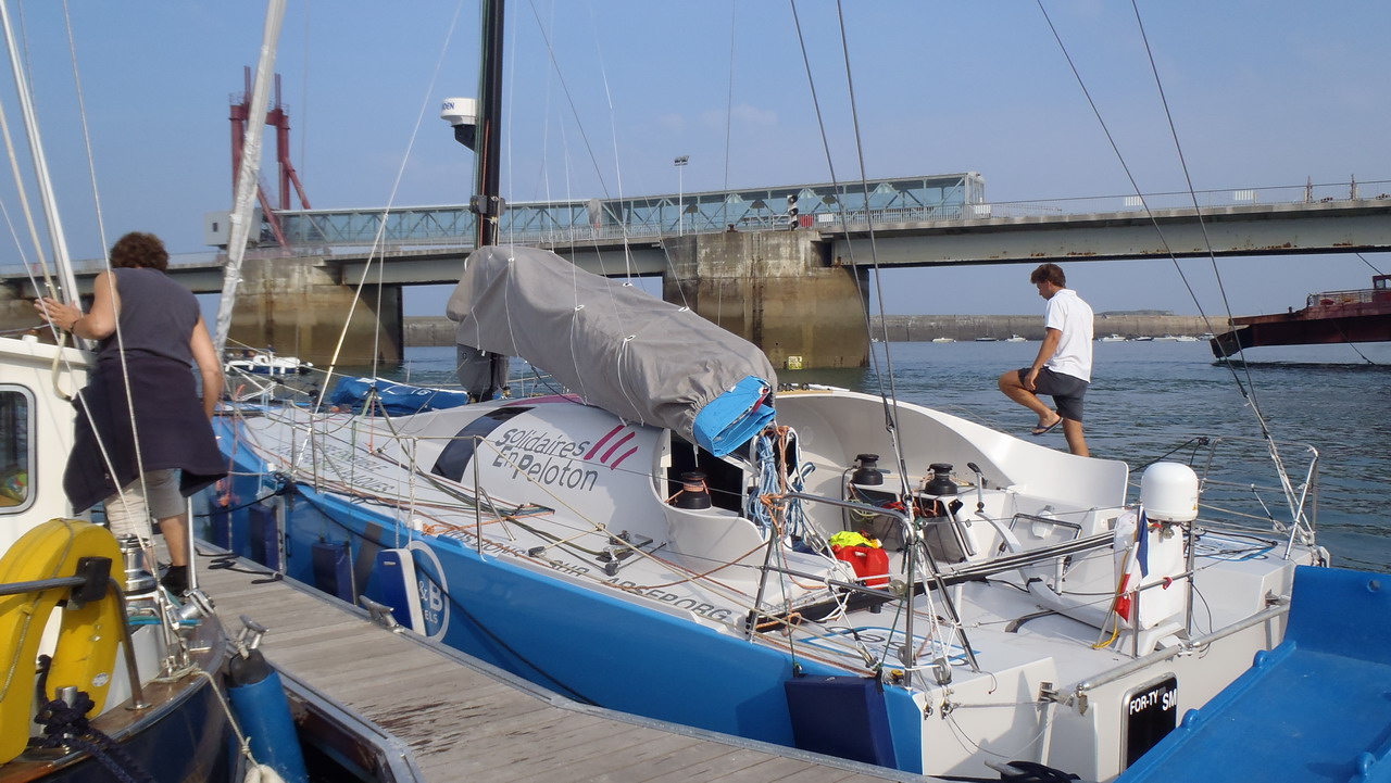| 2014-09-04 - PM _/)_ ~ En après-midi, nous sommes retournés chercher la remorque de l'annexe resté au mouillage de La Passagère sur la Rance avant de revenir à la maison située à côté du phare d'alignement de la Haize. Nous sommes par la suite partis à pied pour une marche de 12 km par la plage pour allez visiter la vielle ville intra muros qui ressemble beaucoup à la basse ville de Québec ou plutôt l'inverse. Nous sommes arrêtés à la maison du Québec qui a été inauguré par René Lévesque en 1984. Au retour, nous avons passé dans le port ou il y avait le trois mât Étoile de France anciennement propriété de Bob Robert Escofier suivie de deux trimarans qui vont probablement faire la course de la Route du Rhum 2014 dont le départ est prévu le 2 novembre quelques jours avant notre retour au Québec... ~ _(\_ |