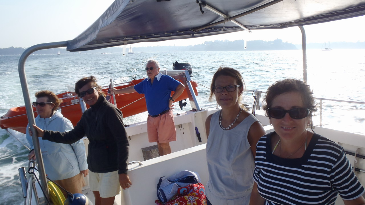 mode de jeter des sceau d'eau froide sur la tête de Gens, et bien Jean à eu l'idée de vider un Ice Bucket à Soizic qui tardais à se mettre à l'eau et comme par hasard j'ai saisis l'événement que vous pouvez voir sur le petit vidéo présenté ci-bas. Vers la fin de la journée, nous avons vu arriver un Westerly Centaur dans notre mouillage et sommes allez parler à la propriétaire pour apprendre qu'il sagit d'un modèle datant des années 1974. Au retour à la marina, nous sommes revenus le long de la côte de Dinan et avons repasser devant Saint Malo. Merci à nos hôtes pour cette très belle journée en super bonne compagnie. On vous aiment... ~ _(\_ |