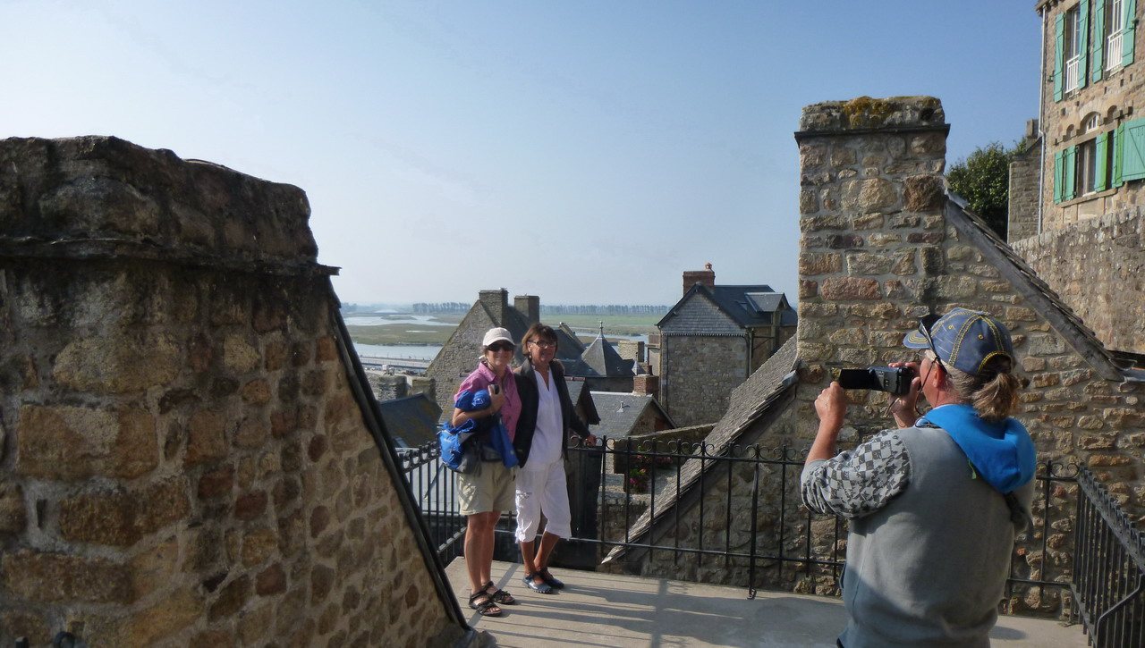 | 2014-09-10 _/)_ ~ Ce matin c'est un départ pour le Mytique et bien connue Mont Saint-Michel situé à la frontière de la Bretagne et de la Normandie. Ce matin, le flot est à son maximum et le mont sera entouré d'eau à compter de 09h00 mais nous arriverons en retard d'une heure et la marée se sera déjà retirée de plus d'un mètre. Nous pourrons toutefois observé le phénomène de loin. Nous y visiterons les Ramparts et les petites rues ascérés de même que l'Abbaye dont les premières fondations remontent au X ième siècle. Pour entendre les cloches du monastère, clique sur le lien ci-bas. ~ _(\_ |