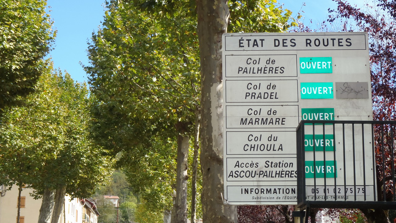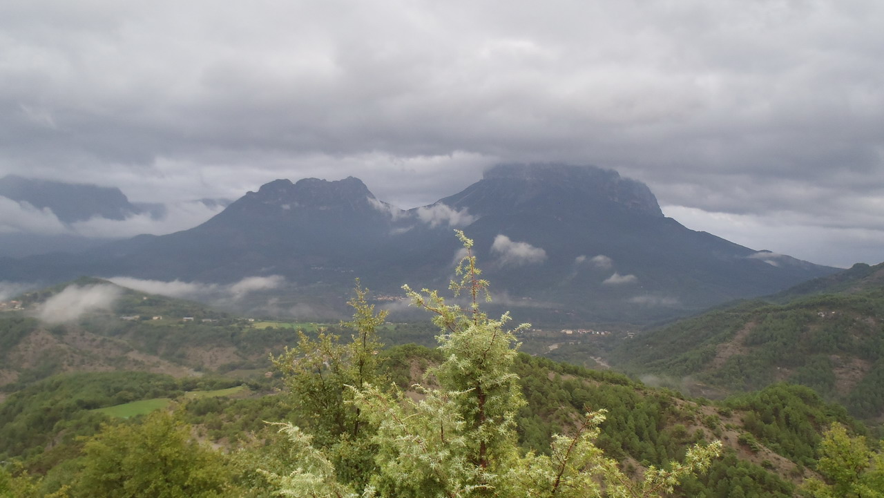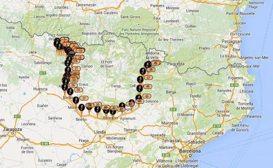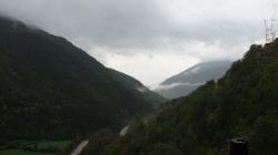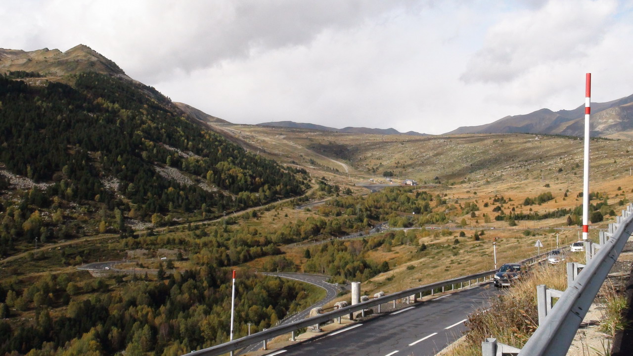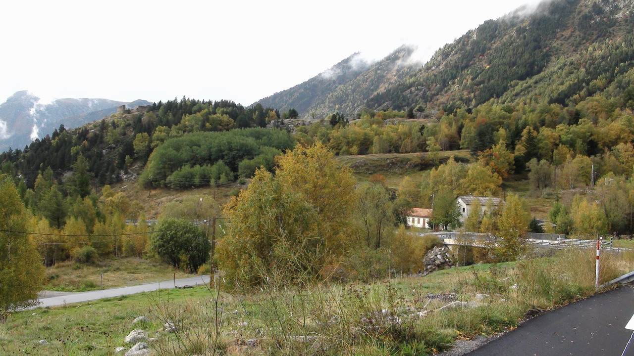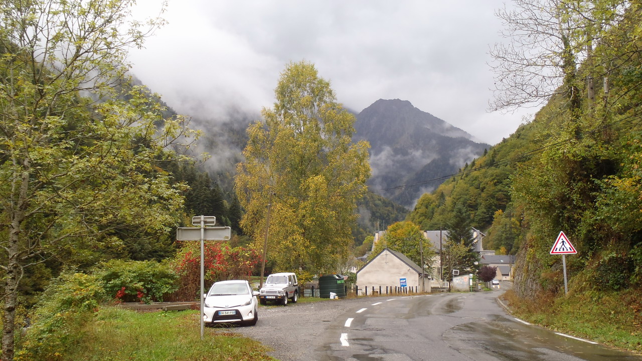 | 2014-10-10 _/)_ ~ 10h00, nous reprenons la route par les petits villages, la météo n'est pas au beau fixe mais ça va nous donner des points de vue photographiques intéressant avec ces nuages en basses altitudes gonflés à bloc. 12h00, première halte, début des montagnes à Saint-Lary ou il y a une télécabine pour le ski. Le décor est formidable avec tout ces villages en fond de vallée ou encore suspendu sur des corniches. Certains fond de vallée ont encore de la glace, il fait autour de 10°C dans les sommets. 12h50, nous traverserons vers l'Espagne par le tunnel d'Aragnouet long de 3km, à 13h15, nous arrêterons diner à Salinas. ... ~ _(\_ |