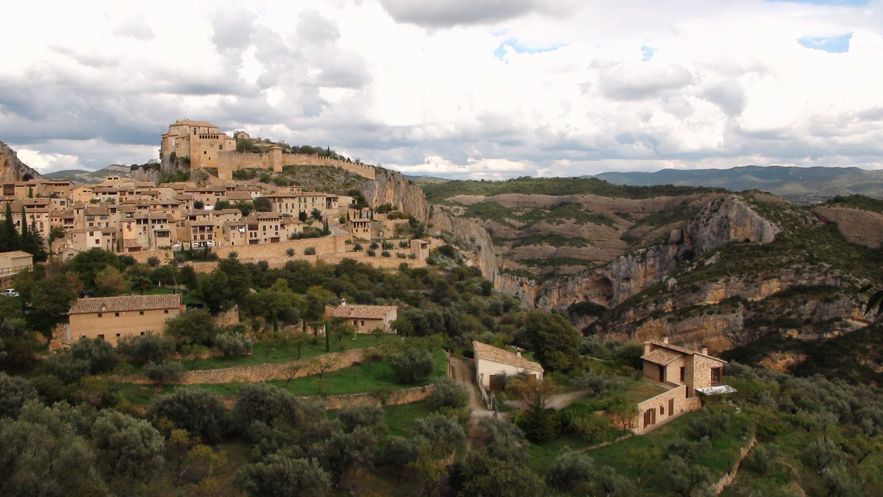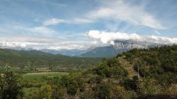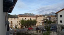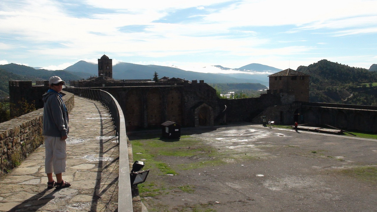 | 2014-10-12 _/)_ ~ La vue de notre chambre, bien que moins spectaculaire que la veille est tout de même dépaysante avec en arrière plan au bout de la rue, les Pyrénées. Il est 10h30 et nous quittons notre belle chambre à 52€ pour revenir en France par les cols et les montagnes... ~ _(\_ |