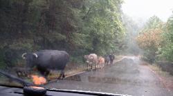 surprise tant au niveau du paysage qu'au niveau découvertes comme ce berger qui déambule avec son troupeau en plein centre de la route dans ce décor insolite... ~ _(\_ |