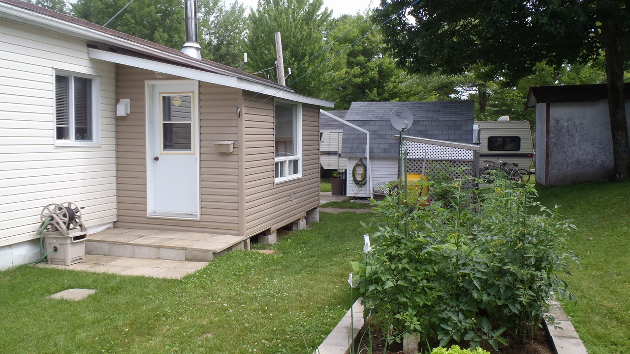 | Automne 2012 Extension du garage de 12 pieds sur pieux vissés pour y loger; le canot de cèdre 1952, la souffleuse, la tondeuse, le golf cart Ez-Go la bagnole Volvo C-70 2004, la tondeuse, la souffleuse et milles et une autres choses... Printemps 2013 Patenter une modification à la porte du garage et à son rail afin d'y ajouter une petite porte latérale qui nous permettra d'avoir assez de largeur pour y passer la voiture lors des périodes d'entreposage hivernal ... |