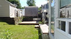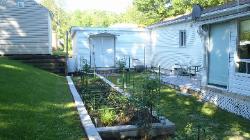 Été 2014 Réfection cour arrière, retrait des terrasses de bois et construction d'une nouvelle terrasse en ardoises, ajout de toiles d'ombres triangulaires beiges achetés en Australie.... Réfection de la toiture de la remise et ajout d'une nouvelle remise à bois. Nouveau jardin ceinturé de blocs de ciment. |