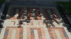 | Juin 2014 Réfection de l'entrée en pavé aux couleurs et motifs variés avec les inscriptions LOUSYL et ajout de toiles d'ombres triangulaires bleues achetés en Australie... et n'oublions pas la chance qu'on a de passer à l'occasion quelques mois d'hiver ici... |