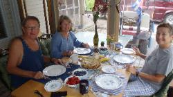 | Du 8 au 10 aout 2017, la grande visite, Jean-Louis et Denise qui arrivent tous juste du Mexique ou il y ont laissé leur bateau, viennent passer quelques jours avec nous et nous leurs avons concoqueé un super déjeuné avec des crèpes moelleuse aux sirop de pamplemousse rose. |