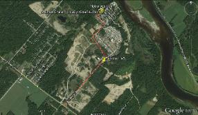 | Photos aériennes des lieux. La maison est au centre des ronds jaune. |