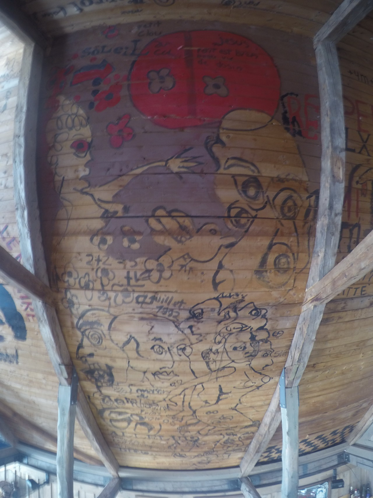 Robert en 1968 alors qu'il faisait une visite dans son coin pour y retrouver ses racines. Les propriétaires actuelles ont mis en valeur les oeuvres qu'on peut voir quand on se rend au restaurant qui porte aussi le nom de la Maison du Pêcheur. Les fresques originales peintes à ce moment y sont visibles. |